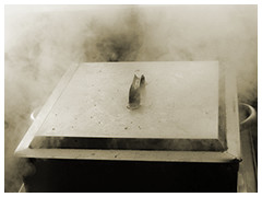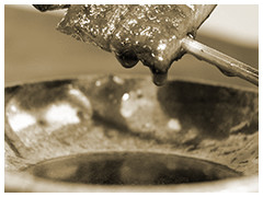 蒸す前の白焼きうなぎを手に持った瞬間、うなぎの硬さを見極め、その硬さにあった蒸し時間を決めます。商品によって硬さが違うことはありえません。山吹で扱ううなぎは全て、一つひとつ丁寧に深蒸ししております。